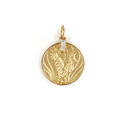 絶滅危惧種の「タツノオトシゴ」をモチーフにしたコイン。重厚感のあるゴールドのメダルフォルムに”涙の光”を意味する一粒のバケット型のラボグロウンダイヤモンドを。